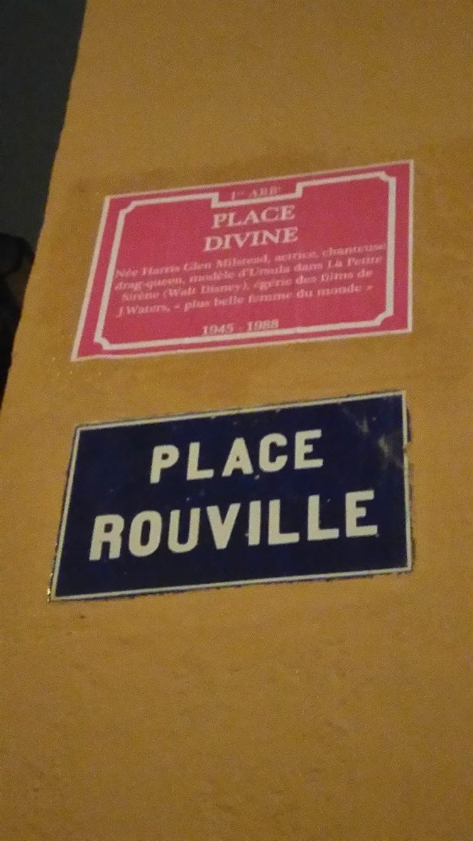 Parmi les femmes ainsi mises à l’honneur, il y a les revenantes, comme la célèbre Divine (“née Harris Glenn Milstead, actrice, chanteuse, drag-queen, modèle d’Ursula dans La Petite Sirène (Walt Disney), égérie des films de John Waters, “plus belle femme du monde“, 1945-1988“) ou Clara Campoamor (“avocate et femme politique républicaine, activiste pour le suffrage des femmes en Espagne, 1888-1972“), qui avaient déjà été célébrées lors de la précédente opération de collage sauvage, il y a deux ans.