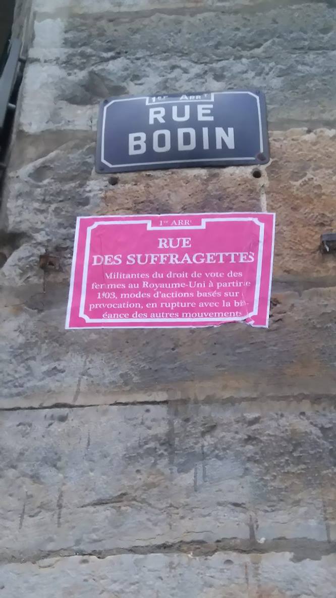 En sortant de chez eux ce matin, les habitants des Pentes de la Croix-Rousse ont dû croire qu’ils étaient mal réveillés : toutes les rues (ou presque) de leur quartier avaient changé de nom durant la nuit ! Les plaques bleues des noms de rues et de places portant des patronymes biens virils (place Morel, rue Flesselles, rue de La Tourette, rue Bodin…) cohabitent désormais avec des affiches roses collées sauvagement et rendant, elles, hommage à des femmes.